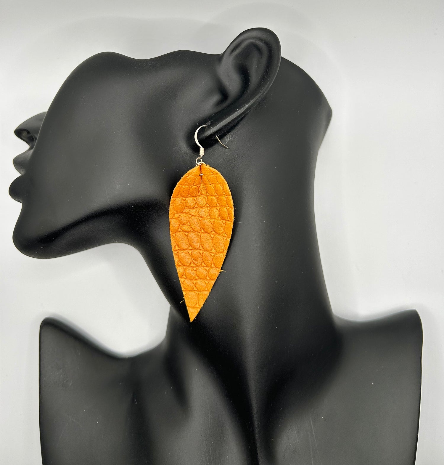 The leather leaf earrings are very lightweight. The fall colors are cute,...
