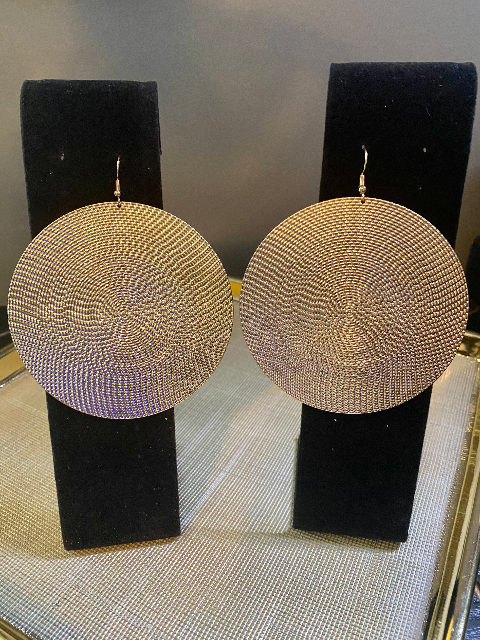 The jumbo gold alloy round earrings are big bold and fun. These are show stoppers for sure.