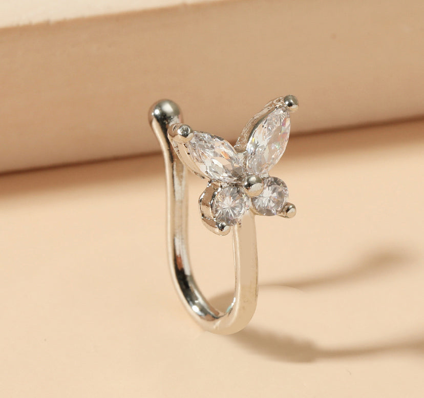 The U shaped butterfly zircon nose clip is cute and sparkly. Perfect for those that love the nose rings but are not yet ready to get a piercing.