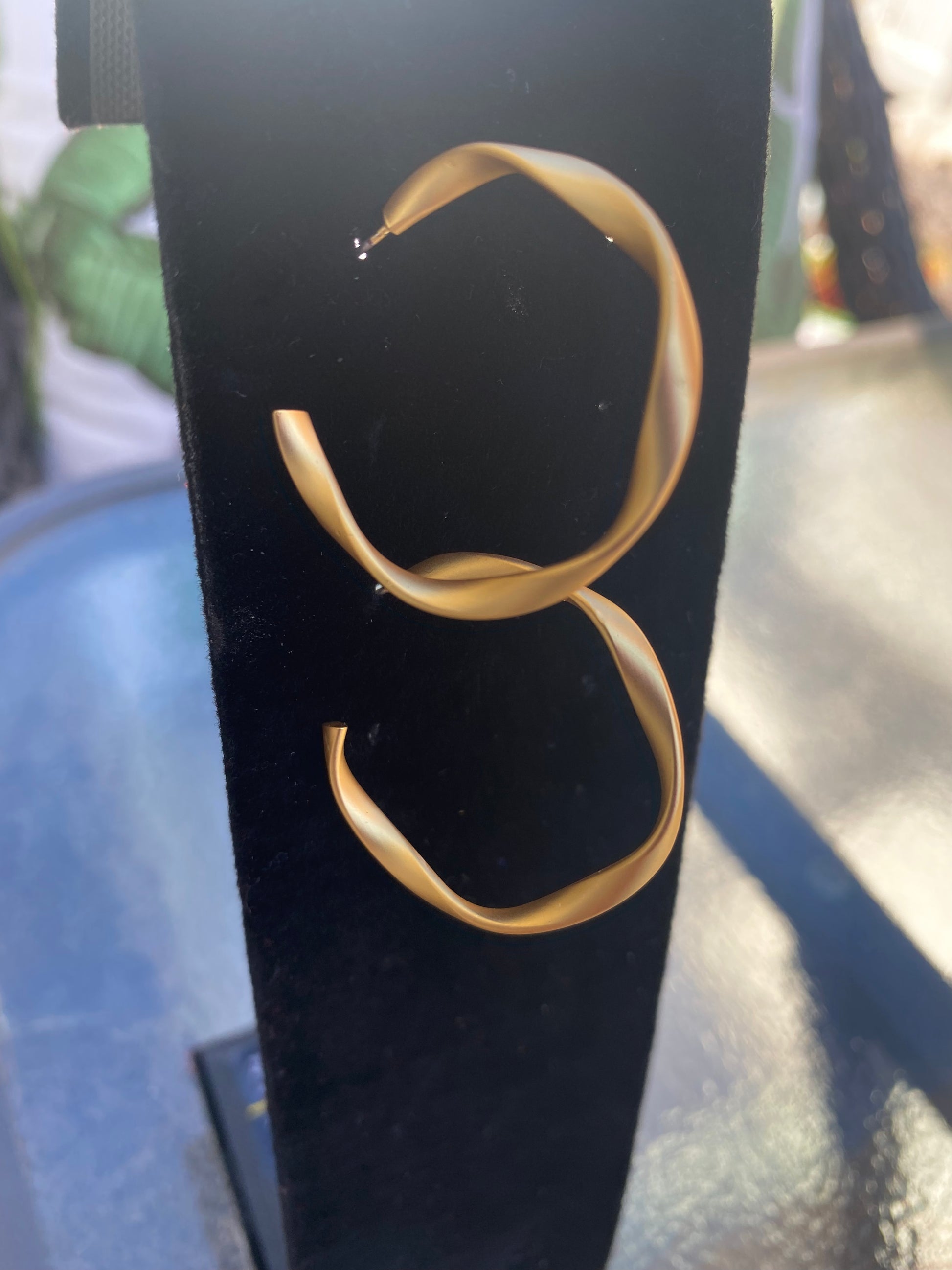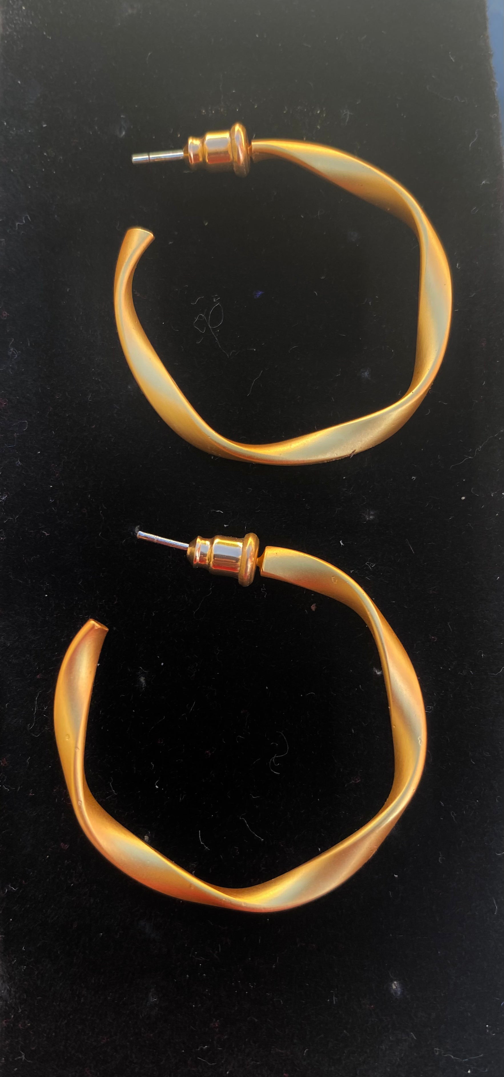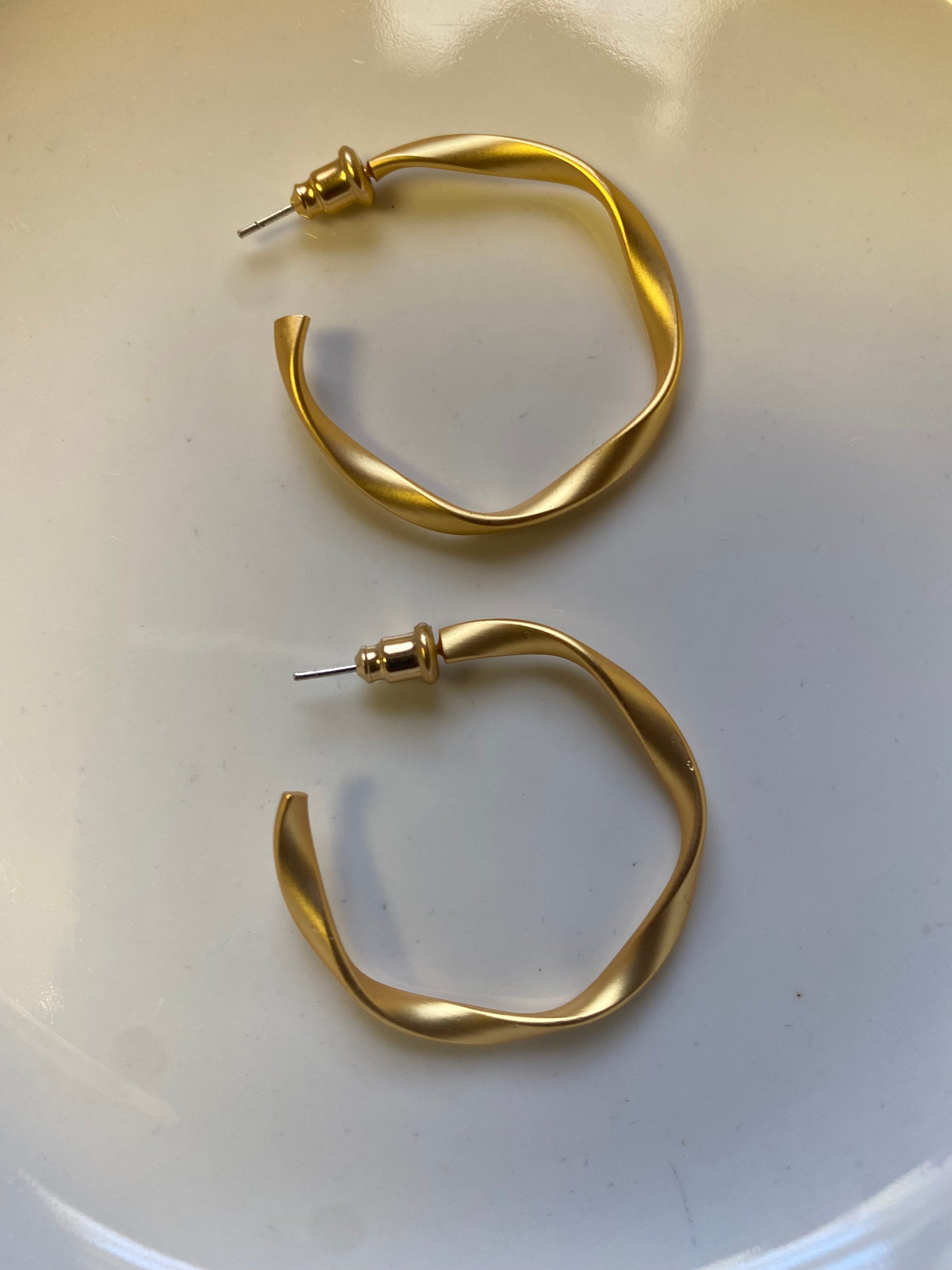 The 35mm gold twisted hoops are great for everyday wear. The brushed gold is vibrant and pretty.
