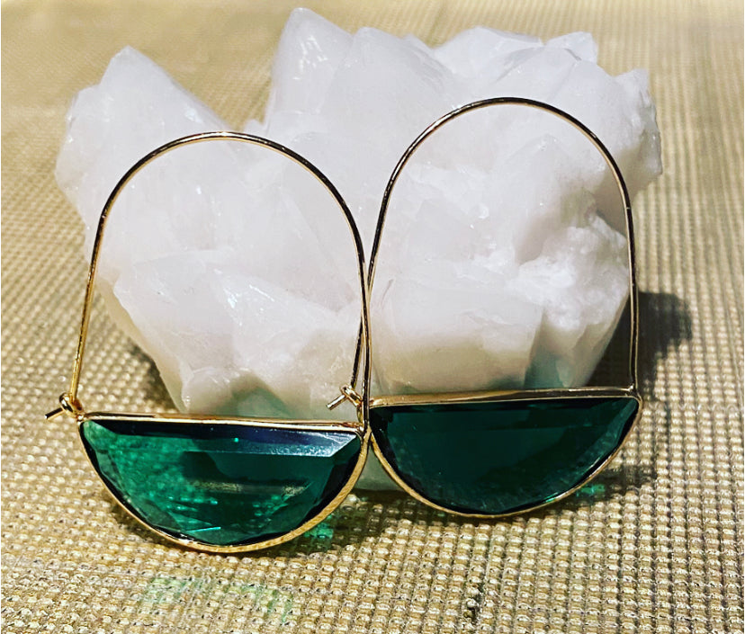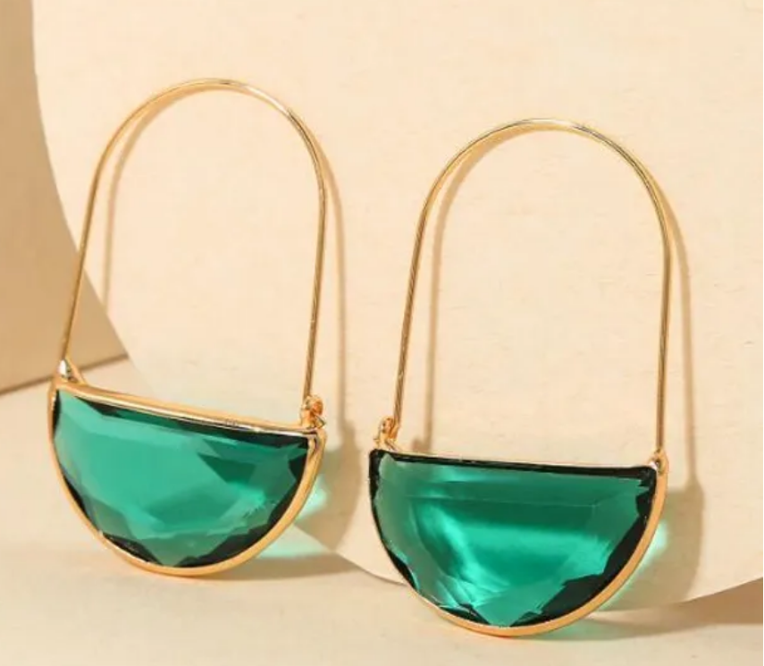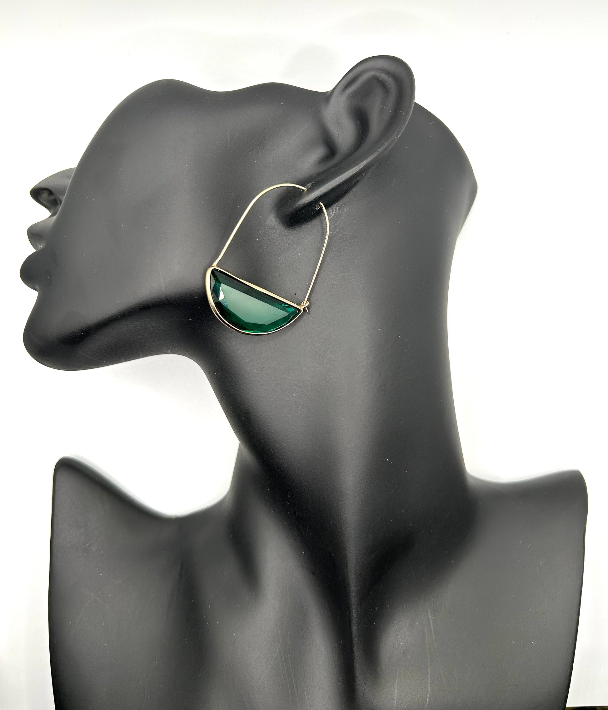 The Emerald Green Purse Drop Earrings are lightweight and fun.