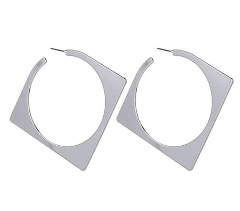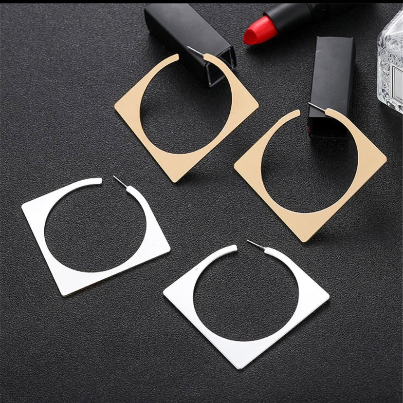 The large geometric hoops and fun statement pieces. They are available in silver and gold.