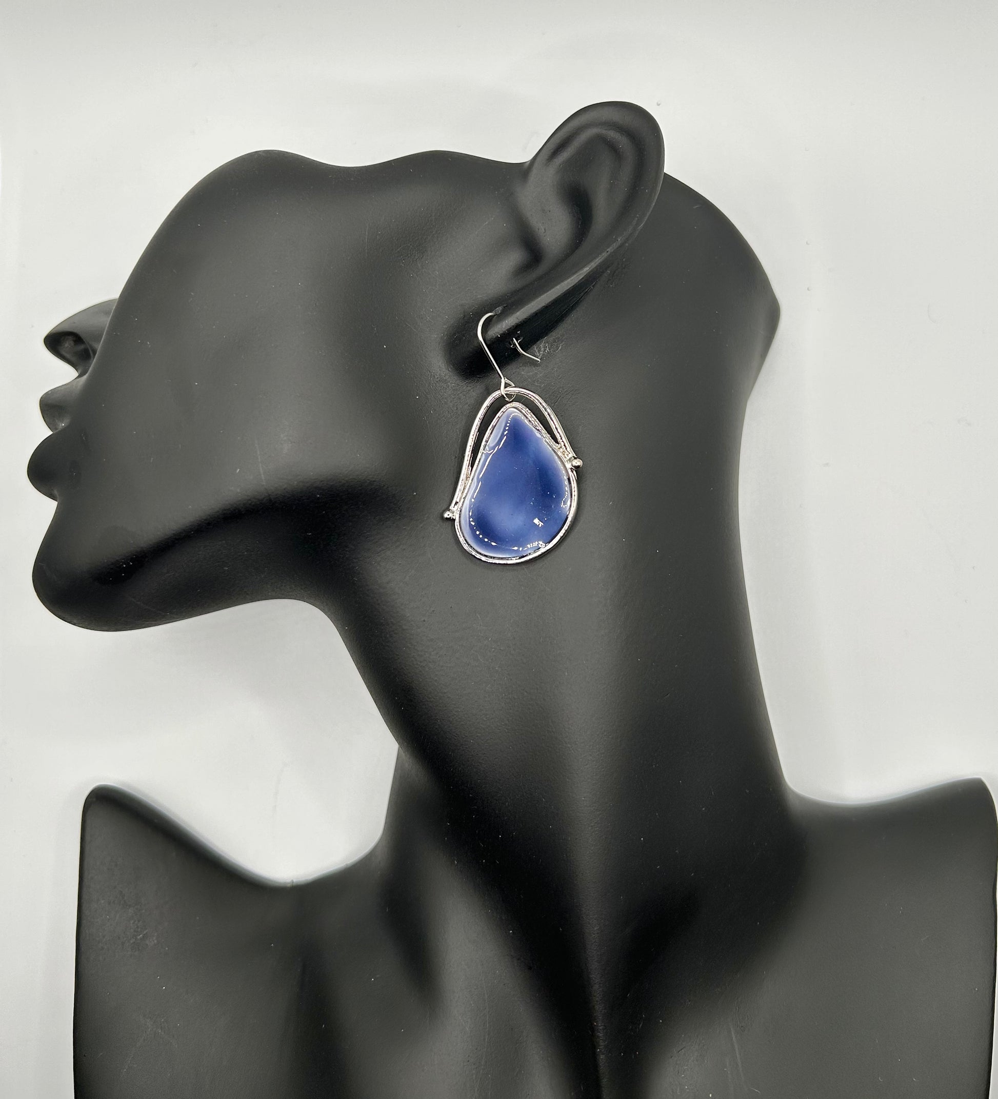 The Boho blue silver dangles have a shell like stone. They are lightweight with a retro look and feel.