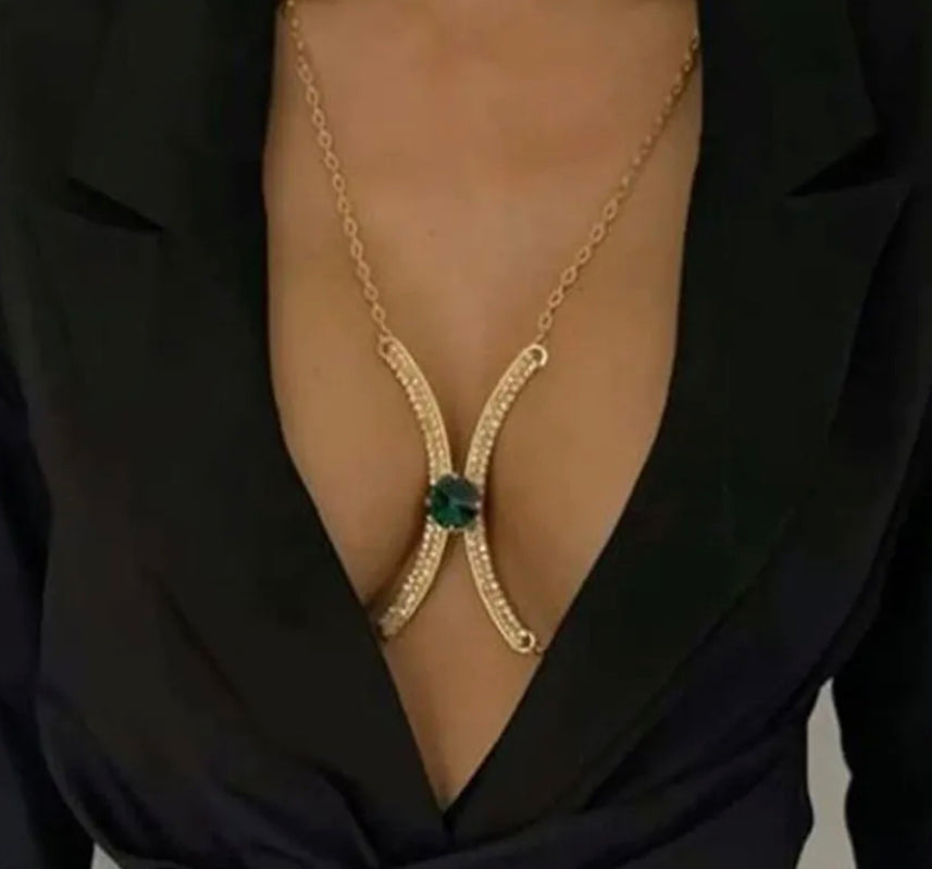 Introducing the X-Factor Body Chain with Rhinestone, an exquisite and daring accessory that redefines your sense of style. This body chain is a true masterpiece, expertly designed to embrace the natural curves of your body, enhancing your silhouette with grace and allure. The focal point, a shimmering rhinestone, adds a touch of opulence to this striking piece.